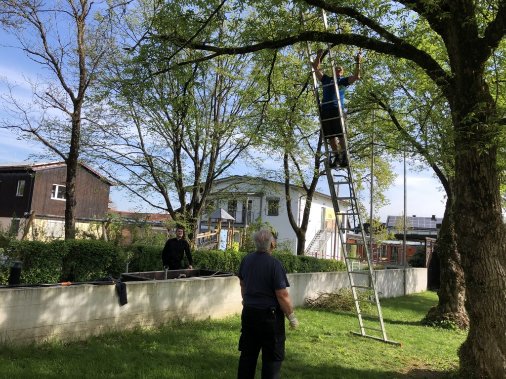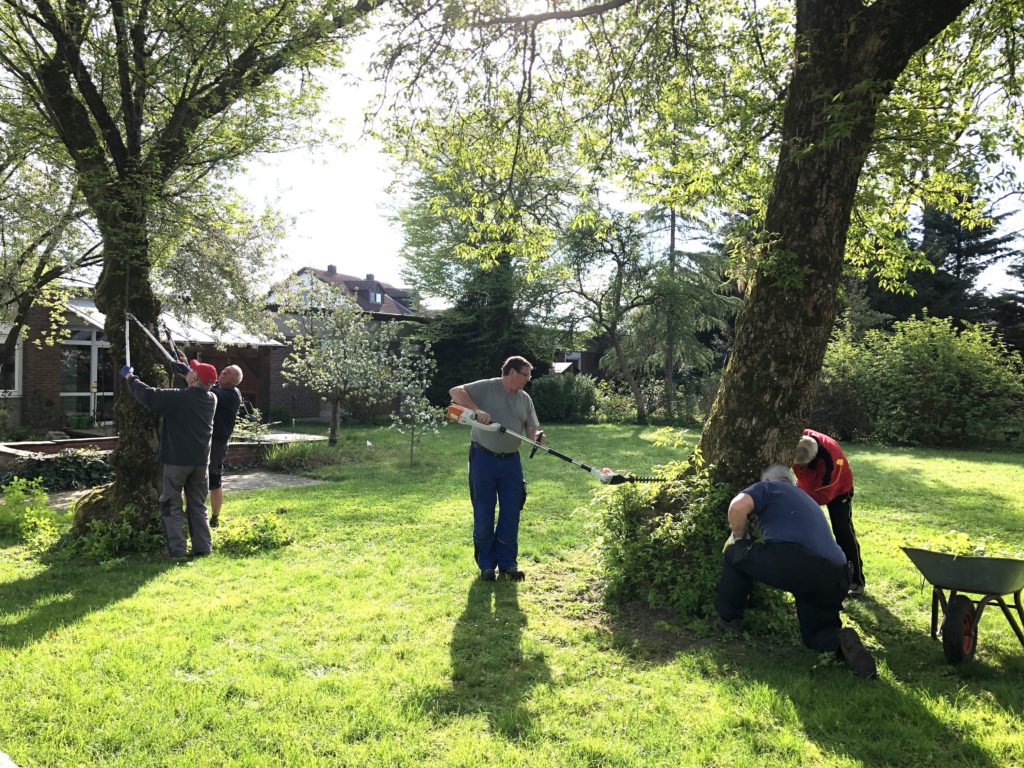 Dieses Jahr haben wir wieder an der „Gartenparty“ teilgenommen. Neun fleißige Helfer haben sich des Pfarrgartens angenommen. Morsche Äste wurden aus Bäumen  entfernt und Totholz aus Sträuchern. Zusammen mit dem Team der Pfarrei stärkten wir uns anschließend mit einer Brotzeit.