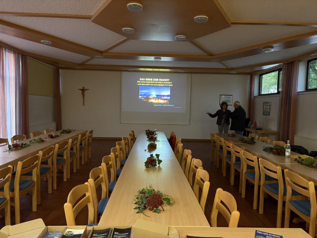 Ca. 40 Mitglieder und Interessierte folgten am Mi, 01.10.2025,  den anschaulichen Erläuterungen der Referentin Margit Seifert von der Organisation „Paten der Nacht“, die aktiv ist zur Eindämmung der Lichtverschmutzung. Die Lichtintensität  reduzieren, warmes Licht bei Leuchtmitteln wählen und die Brenndauer auf das Nötigste begrenzen sind die drei wichtigsten Tipps. Ebenso sollte Abstrahlung nach oben vermieden werden und abends die Rollläden möglichst geschlossen sein. Die Zuhörenden waren überrascht, wie einfach und wirksam jeder beginnen kann. Auch bei der Weihnachtsbeleuchtung ist sparsam besser, sowohl die Dauer am Abend reduzieren als auch die Begrenzung auf die Advents- und Weihnachtszeit.